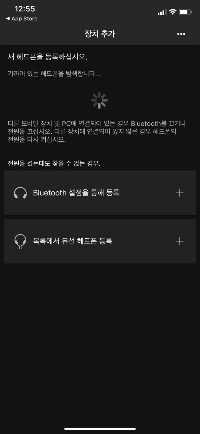 헤드폰 옆면의 전원버튼을 꾹 누르신 다음