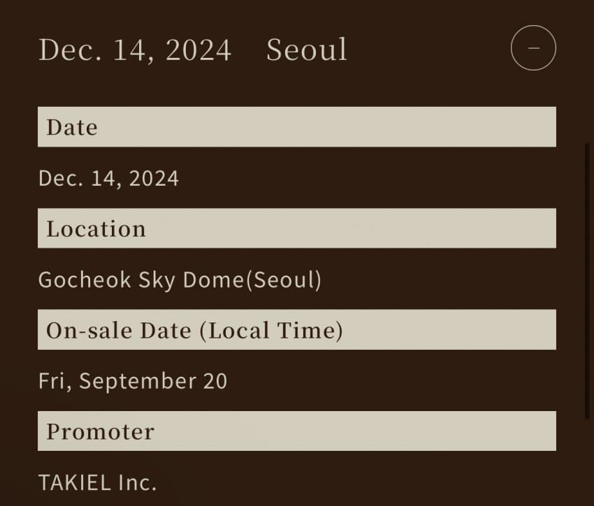대한민국의 경우 12월 14일 서울 고척 스카이돔에서 공연을 개최한다고 해요